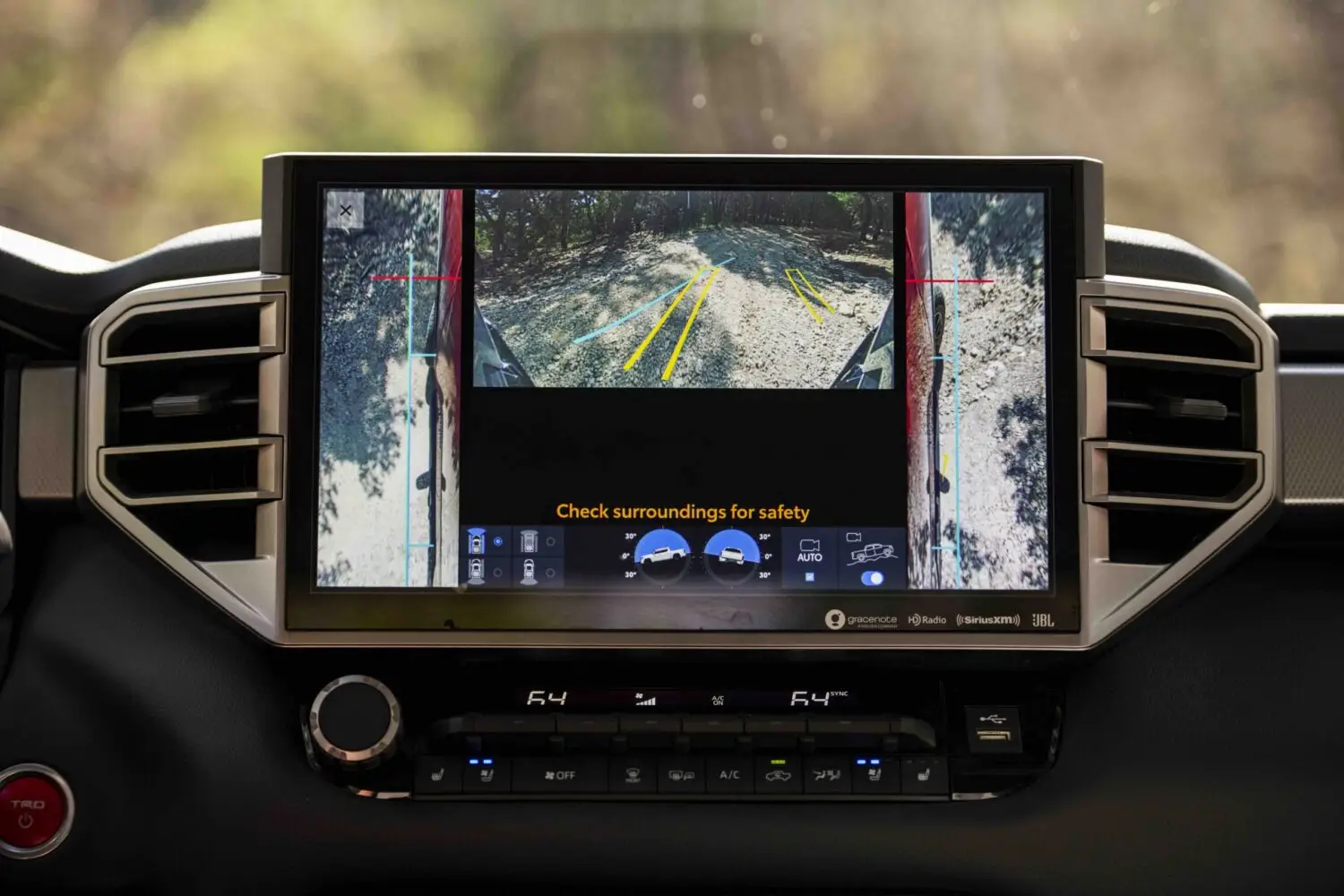 El acabado Capstone incluye una pantalla de proyección o HUD a color de 12 pulgadas y un espejo retrovisor digital, así como el asistente de voz inteligente integrado con la funcionalidad “Hey Toyota” para dictar direcciones de navegación, cambiar de estación de radio o ajustar la temperatura de la cabina. Y como todas las Tundras, la Capstone obtiene la suite de características de seguridad activa de Toyota, incluyendo luces altas automáticas, control de crucero adaptable, mantenimiento de carril con centrado activo de carril y frenado de emergencia automático.